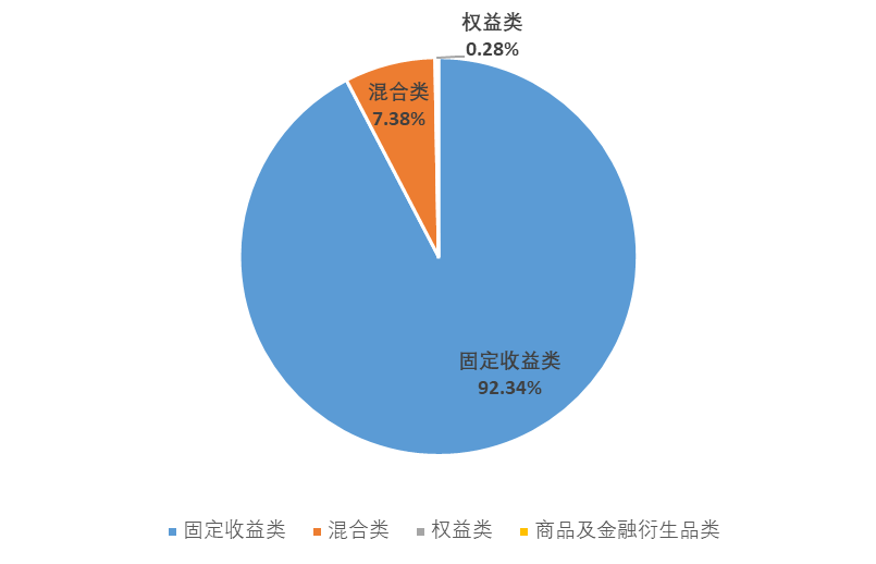 ??從產(chǎn)品類型上看,據(jù)《報告》顯示,截至2021年底,固定收益類理財產(chǎn)品存續(xù)余額為26.78萬億元,同比增長22.80%,占全部理財產(chǎn)品存續(xù)余額的92.34%;混合類理財產(chǎn)品存續(xù)余額為2.14萬億元,同比下降46.13%,占全部理財產(chǎn)品存續(xù)余額的7.38%;權(quán)益類理財產(chǎn)品存續(xù)余額為809億元,同比增長1.09%,占全部理財產(chǎn)品存續(xù)余額的0.28%;商品及金融衍生品類理財產(chǎn)品規(guī)模最小,僅為18億元。