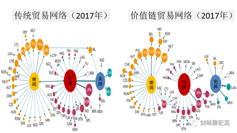 在當今世界的經(jīng)濟格局中,已經(jīng)是三足鼎立,形成了以德國為中心的歐洲貿(mào)易網(wǎng)絡,以美國為中心的美洲貿(mào)易網(wǎng)絡,以及以中國大陸為中心的亞太貿(mào)易網(wǎng)絡。在貿(mào)易網(wǎng)絡結構圖中,代表每個國家的圓圈越大,就說明貿(mào)易規(guī)模越大。顯然,以中國大陸為中心的亞太貿(mào)易子網(wǎng)絡在規(guī)模上遠遠超過了其他兩個子網(wǎng)絡。然而,唯有亞太貿(mào)易子網(wǎng)絡沒有自己的關鍵儲備和貿(mào)易貨幣,歐洲子網(wǎng)絡有歐元,美洲子網(wǎng)絡有美元——這也成為了亞太子網(wǎng)絡中的關鍵貨幣。